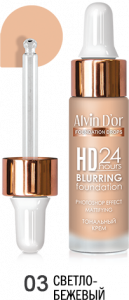 Alvin D`or BC-07 Foundation Hd 24hours Blurring drops tone 03 15ml The ultra-light texture of the cream is ideally applied with a convenient pipette applicator, practically does not feel on the face and stays on the skin for 24 hours. Evens out skin tone and hides minor imperfections.